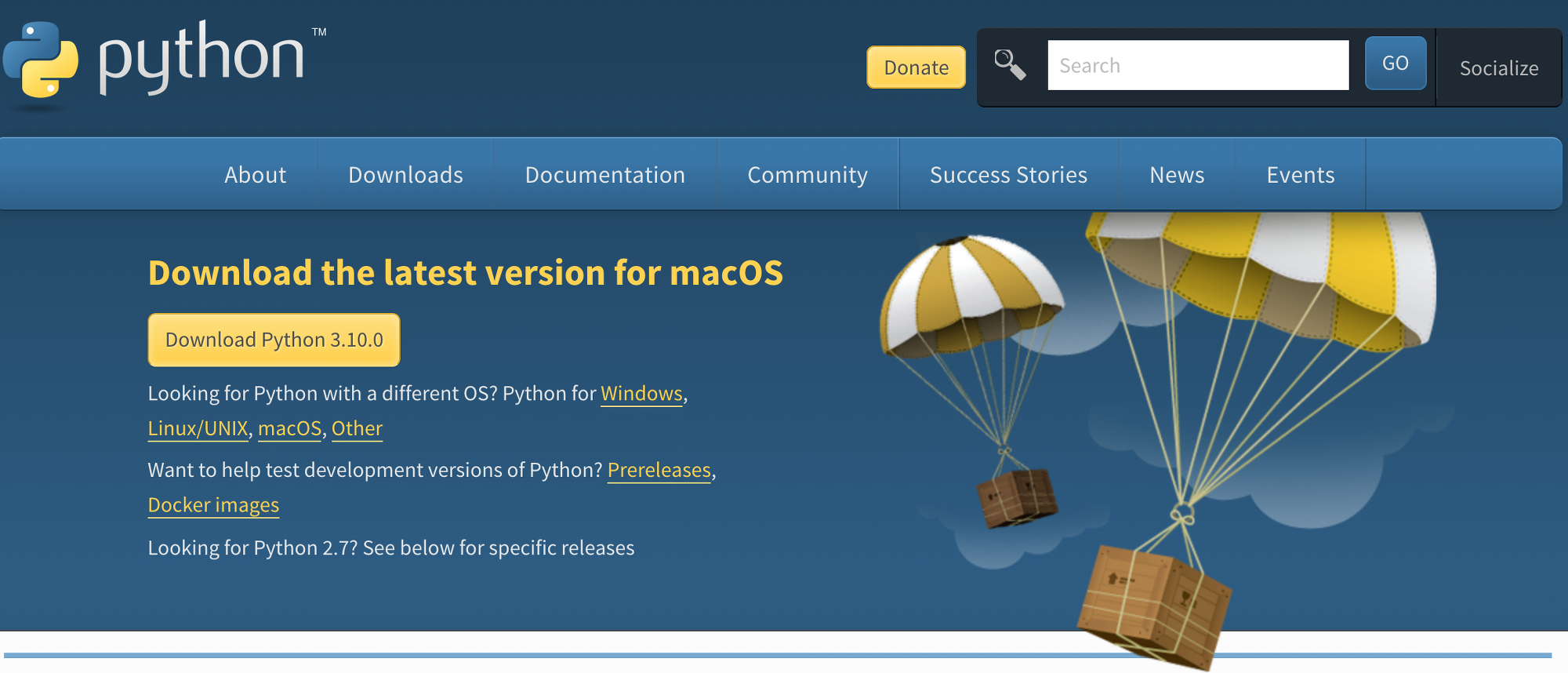 1. 최신 버전의 Python을 다운 받아서 설치합니다. (2021년 12월 6일 현재 3.10.0 버전)