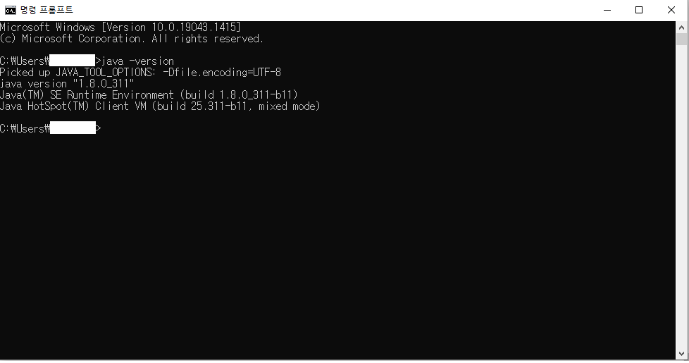 8. CMD창에 java -version 을 입력하고 엔터를 쳐서 아래와 같이 자바 버전이 나오면 설치 및 환경 변수 설정 완료입니다.
