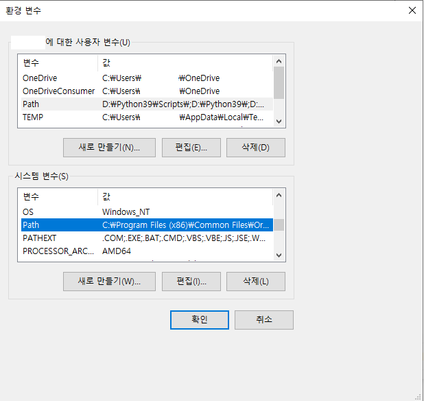 5. 시스템 변수의 Path 를 더블 클릭합니다.