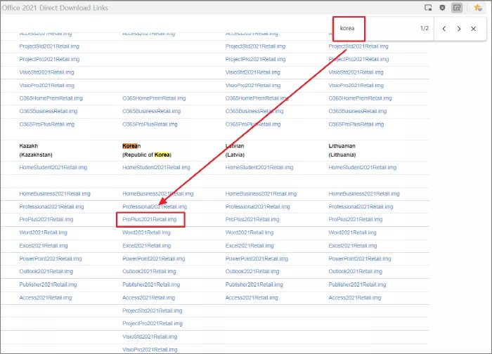 1. 아래 사이트에 들어가서 한국어로 된 Office 2021 Professional Plus 다운로드합니다.