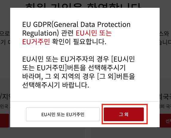 그러면 대부분은 현재 거주하는 지역이 한국이니까 아무 생각 없이 한국 국가 지역을 클릭하실 겁니다.
