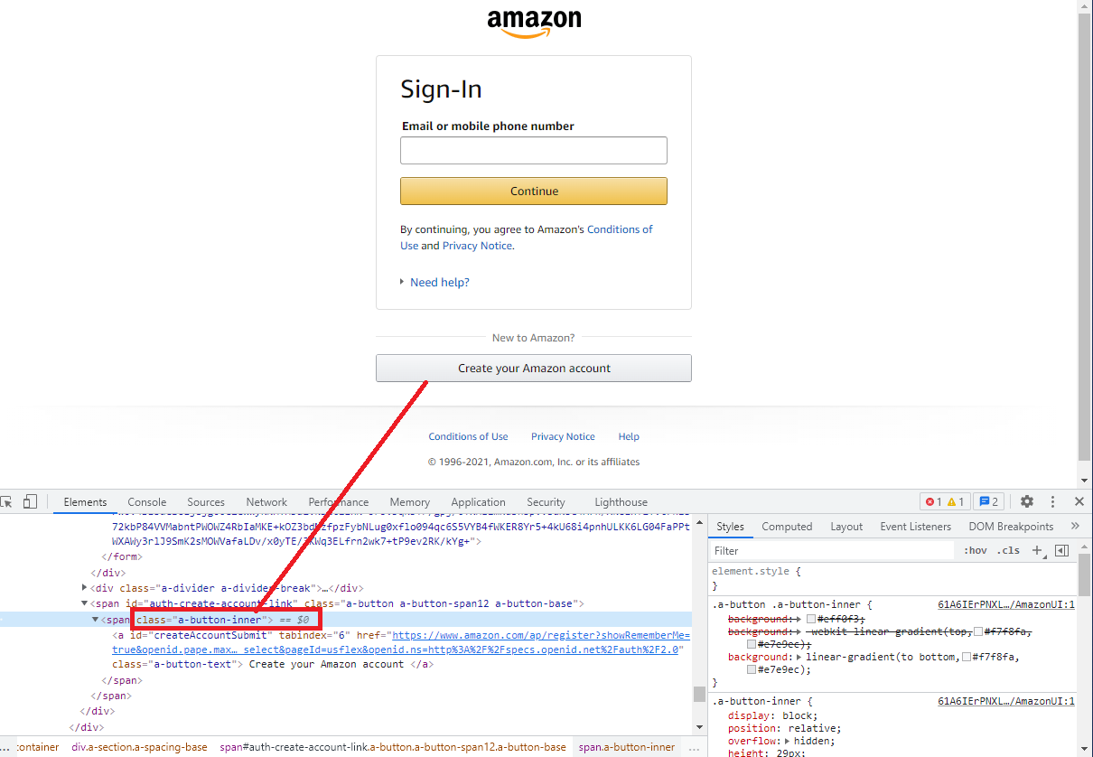 1. 웹 요소를 식별하기 위해 검사 아이콘을 클릭합니다.