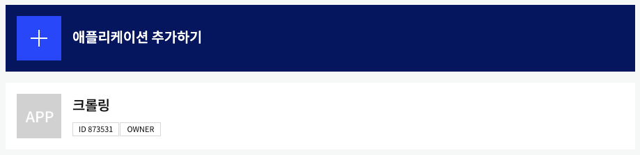 3. '내 어플리케이션' 메뉴 클릭 > '애플리케이션 추가하기' 를 클릭합니다.