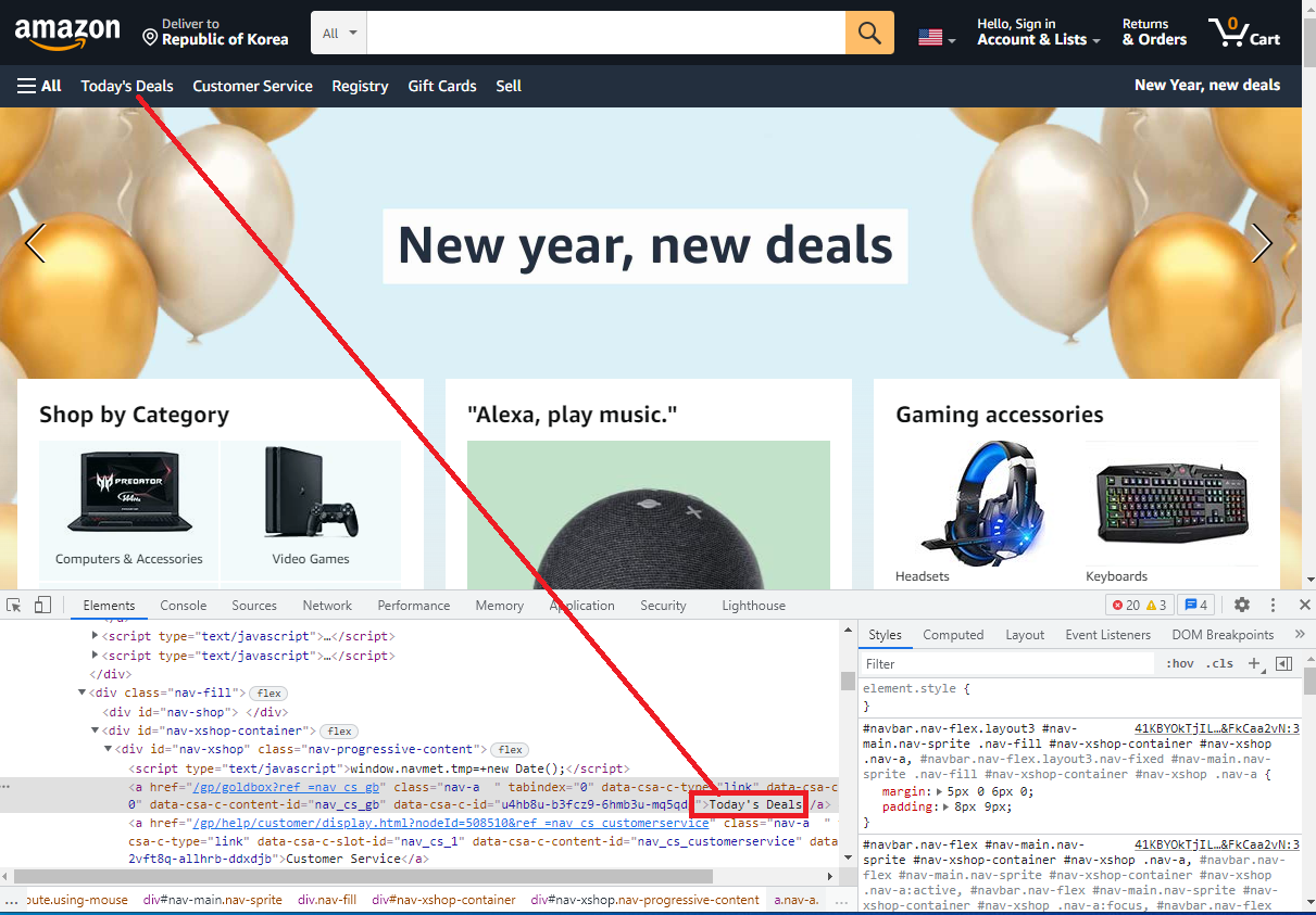 2. 검사할 대상(요소)을 클릭합니다.