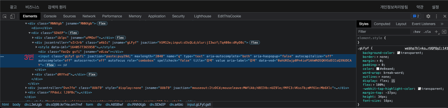 3. 요소를 기록해둡니다. (ex. CLASS, ID..)